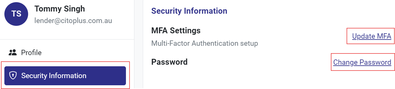 - Security - covering crucial elements like your Password and Multi-Factor Authentication (MFA), ensuring your account remains protected and secure.